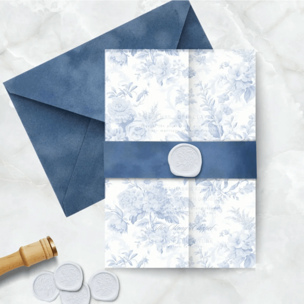 2. French Blue Toile Vellum Jacket for Wedding Invitations & Cards
